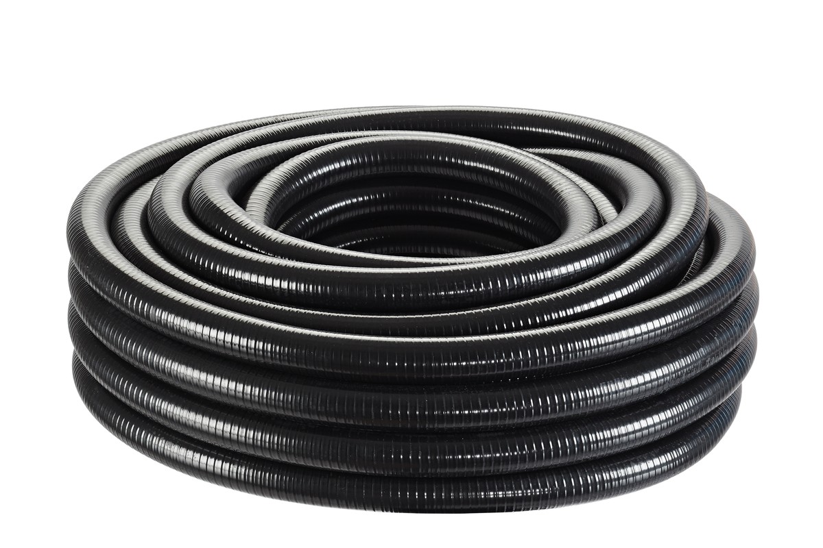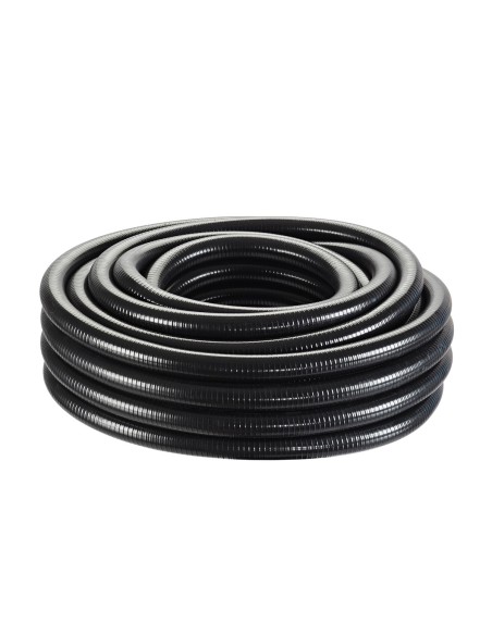 Tout est en mouvement - dans le tuyau spiralé noir en PVC, adapté aux raccords 1 ¼", dans lequel l'eau peut s'écouler facilement grâce à une paroi intérieure lisse. Son bon comportement d'enfoncement est particulièrement utile lors de la construction d'un bassin. jusqu'à +50 °C, au gel et aux forts rayonnements UV, il conserve toutes ses performances.Aucune contrainte sur le bassin : le tuyau spiralé de 25 m de long est garanti sans métaux lourds.Convient pour une pression de service de 3 bars.
